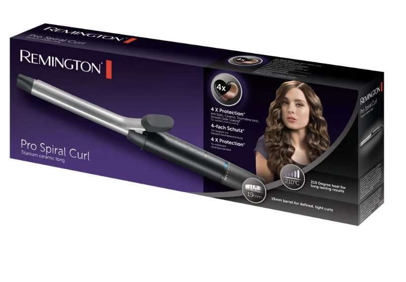 REMINGTON Arricciacapelli Ferro Arriccia Capelli 19 mm Temperatura Massima 210 °C Spegnimento automatico colore Nero / Grigio – CI5519 Pro Spiral Curl